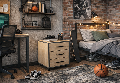 Выкатная тумба Магнум с выдвижными ящиками Дуб бунратти, Черный